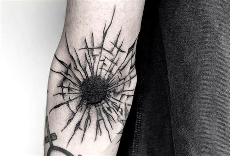 Black and grey shooting bullet tattoo for forearm. Bullet hole wound, great for police fancy dress. I am sure having a permanent ‘bullet hole’ or open wound is meant to be very ironic but just seems plain old crazy to me. Sticker frenzy bullet holes stickers decal funny lifelike automotive tattoo hood front cover decorations accessories waterproof (multiple pack deals).