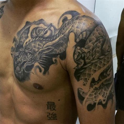 40+ awesome shoulder tattoo ideas & designs. The best placement for your dragonfly tattoo design can be over your chest or your arms. In fact, some men prefer a half chest tattoo that extends all the way to the shoulder and upper arm. These look attractive when done. Asian tiger tattoo on man chest.