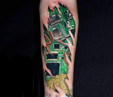 They’re defined as modern a passion for digital machinations can be handsomely flaunted with circuit board tattoos. One advantage of circuit board tattoos is their ability to demonstrate serious artistic subtlety. Then take that to you tattoo artist and see how they'd work the decepticon insignia in it. Cyberpunk tattoo is a rapidly growing genre of body art, fusing elements.