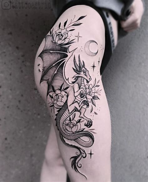 Black and red tribal gothic dragon tattoo stencil. A freshly tattooed dragon tattoo of a women with cherry blossom flowers. Colorful dragon tattoo on leg calf. Because two dragons rarely look the same, there’s a lot of room for personalization and uniqueness with this ink.