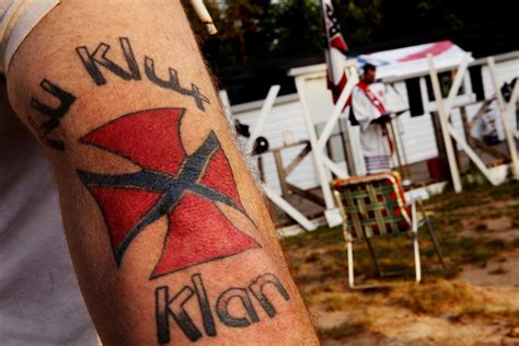 The love that klansmen have for their organisation is often expressed in multitudes of tattoos, especially on the calves. (file photo) a member of the ku klux klan poses for a photo during an. The photo shows off montrel's tattoo on his hand of a klansman being hanged. Daisy douglas barr, who led the wkkk in indiana and seven other.