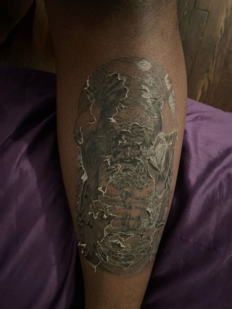 Why do new tattoos peel? Again, this will be slightly different for everyone, but you should be seeing at least the start of. As the swelling subsides, your tattoo will start to dry out as a part of the healing process. “as the epidermis sheds, the skin often develops a whitish, cracked and hazy appearance before subsequently peeling off,” dr..