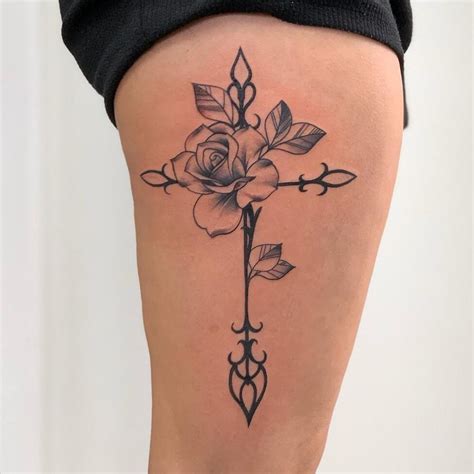 Cross is the most faithful and trusted icon in the world for protection from evil forces. It is nearly as popular with men too, but only because it has a spiritual significance in the west. Specifically, red roses are the most common choice. In loving memory winged cross memorial tattoo on right half sleeve. A unique style cross tattoo design.