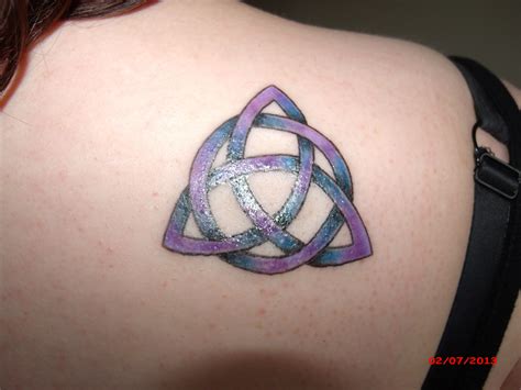 However, it was known as the trinity knot in one form (which included a circle like the sisters knot), and an even earlier form represented the elements of air, water, and fire. The triquetra image is a popular tattoo among men and women. Grab a wet towel and allow the backside of the tattoo to get soaked for a few seconds